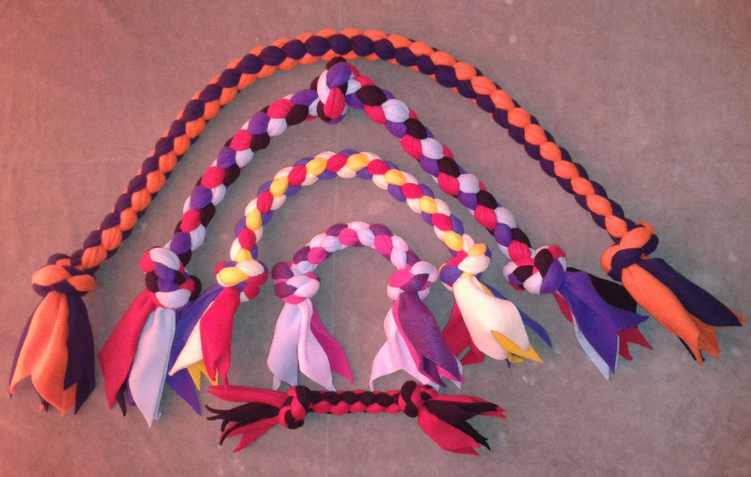 From outside: Long Tuggy, Long Tuggy with Central Knot, Medium Tuggy, Short Tuggy. Bottom: Pocket Tuggy