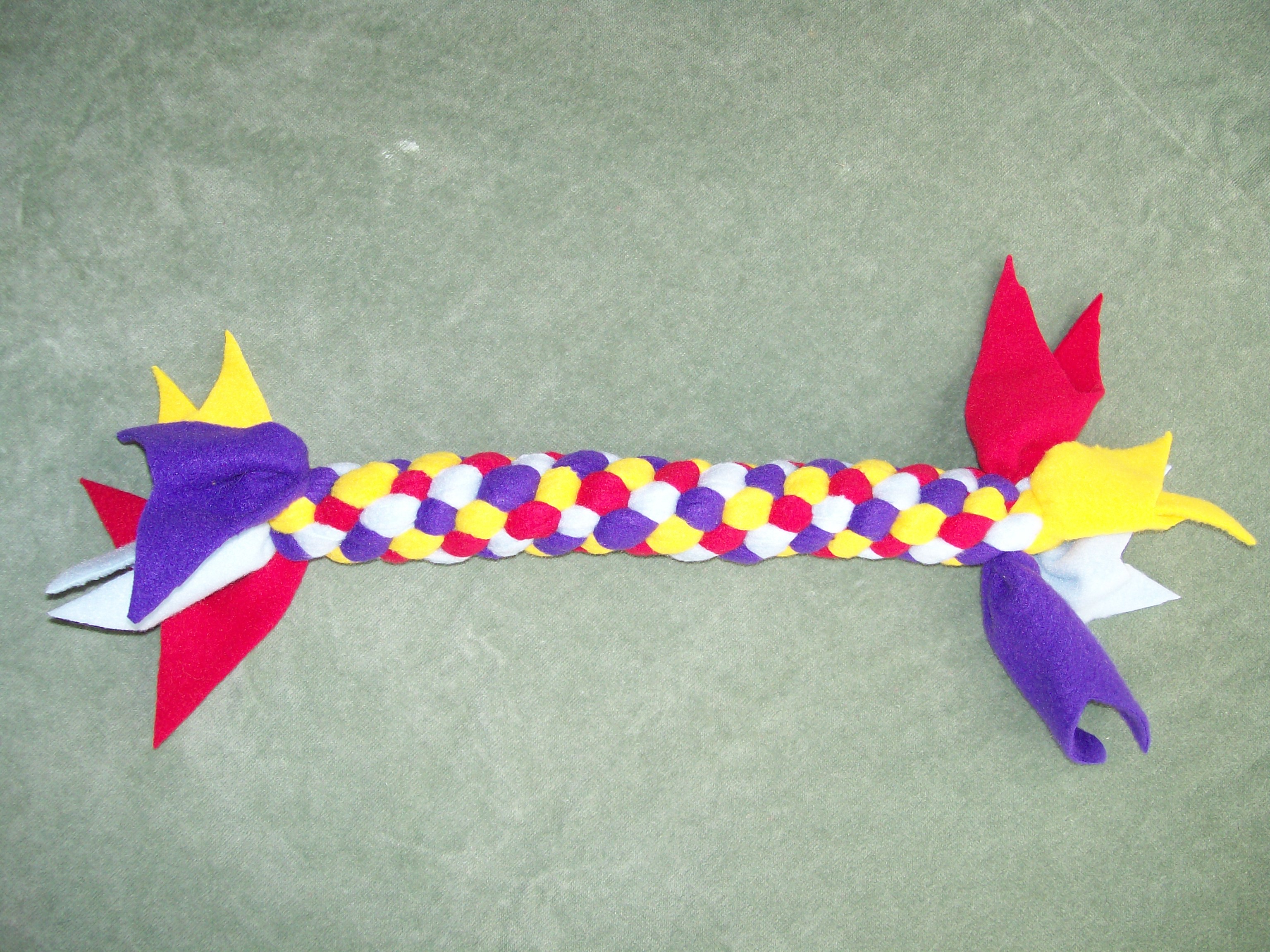 Tuggles Tuggies come in different shape, sizes & colours, but are all made using 4 strands of polar fleece.