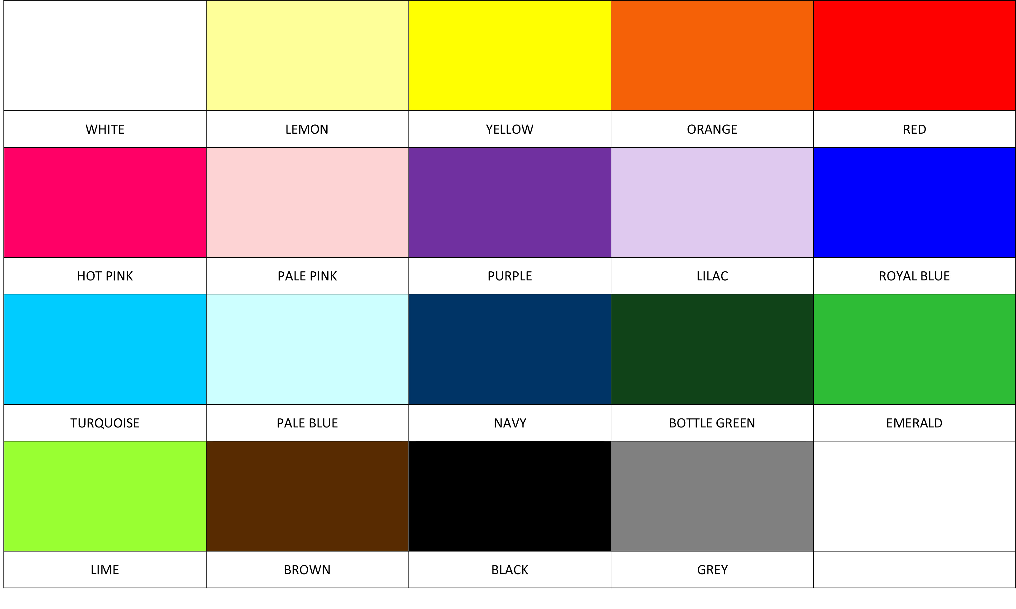 Any of these 3 styles can be made with either 1, 2, 3 or 4 different colours of fleece from our colour chart below.